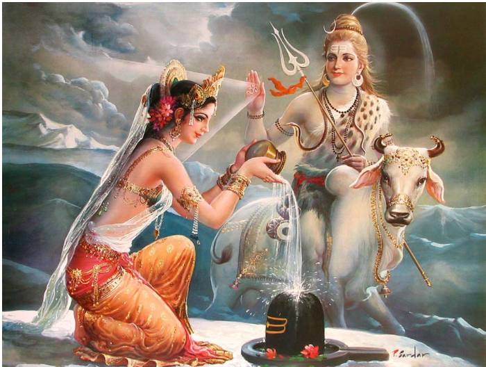 कृताभिषेको गिरिराजपुत्र्या रुद्रस्सनन्दी भगवानिवेशः।।3.16.43।।