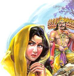 An unsuspecting sItA treated the disguised rAvaNa with the honour due to a guest. She answered his inquiries about who she was and why she was there in the forest with the fear that the brAhmin may take offence and curse. She then asked the same question of him and although he came in the guise of a mendicant, rAvaNa took no time to reveal his real self and the intention of his coming. Listening to his purpose, sItA, although alone in the hermitage at the time without the support of rAma or lakshmaNa minced no words in lambasting rAvaNa for his temerity and lambasted him comprehensively. She pooh-poohed him and reminded him that he is an absolute nobody in comparison to rAma to aspire for her and that she was way beyond his reach even if he abducts and takes her away forcibly! The way mahaRshi describes she seems to have a foreboding of the ominous things to come. She called him a jackal as compared to the lion that rAma was. She compared him to a jackal that is greedily aspiring for a lioness that she is! Having rained her wrath on him, she withered like a plantain leaf in stormy winds. Onwards…