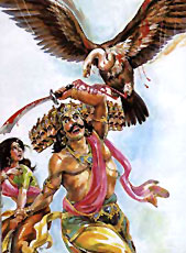 Presently, as the ten-headed demon abducted sItA and soared to the skies in his aerial chariot even as she screamed for help. There just was no one who would dare to come to her rescue. Or, did no one? Onwards…