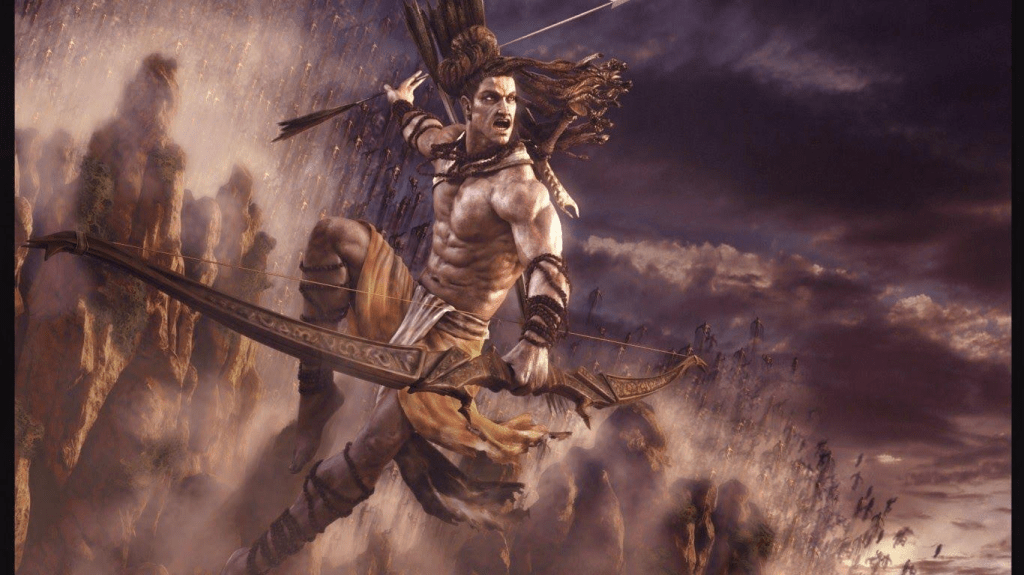 The gods will witness today as to how my arrows will hit distant targets when shot in great rage. Today neither the gods nor the demons nor the goblins can escape my anger and will all be destroyed. She might have been eaten up or abducted but if the gods do not hand over her to me intact, I will destroy the worlds along with all the beings in it”.