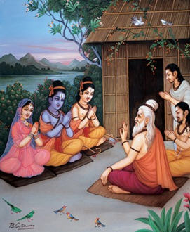 The entry into the forest has been highly eventful! Beginning with a brief meeting with ascetics, the trio were pounced upon by virAdha. After some anxious moments, the brothers get the better of the demon and vanquish him. The demon who is actually a celestial singer accursed into an ogre then realized who rAma was and he returned to his celestial abode, he pointed rAma to meet sage Sarabhanga. Heading to the hermitage of Sarabhanga, the trio behold celestial and ever youthful gods there who were purportedly in procession as their lord indra was visiting the sage Sarabhanga. Sighting rAma indra hurries as it was no time yet to face up our protagonist! Then the trio enter the hermitage of Sarabhanga who had held onto his life just in anticipation of rAma. After offering the trio his hospitality, the sage leaves for the higher worlds through fire and attains salvation. Then the sages of various orders converge on the hermitage and meet rAma. They hail him as the king of the earth and remind him that it is unrighteous for a king to not cater to the welfare of his subjects. They seek protection in him from the demons. Ready to the task, rAma tells him that he is at their command and they ought not request him. He makes it clear that he is not just here on a personal mission, passingly hinting that there was a deeper meaning to his banishment! Onwards…