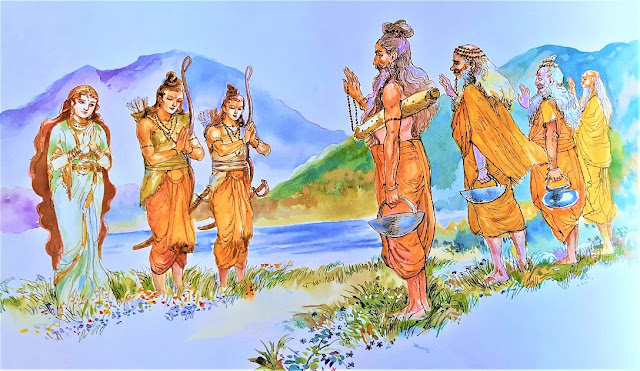 rAma followed the migrating Rshis for a while, understood their points of view and got convinced of their predicament and decision. He returned to the Ashram and was constantly in their thoughts. Alerted and warned by them about the likely perils, he didn’t move away from that hermitage even for a while.