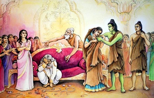 I have no need for the entourage. I confer everything upon bharata. I need nothing but the bark to put on right now and get me a crowbar and a basket. I shall dwell in the forest for fourteen years”.