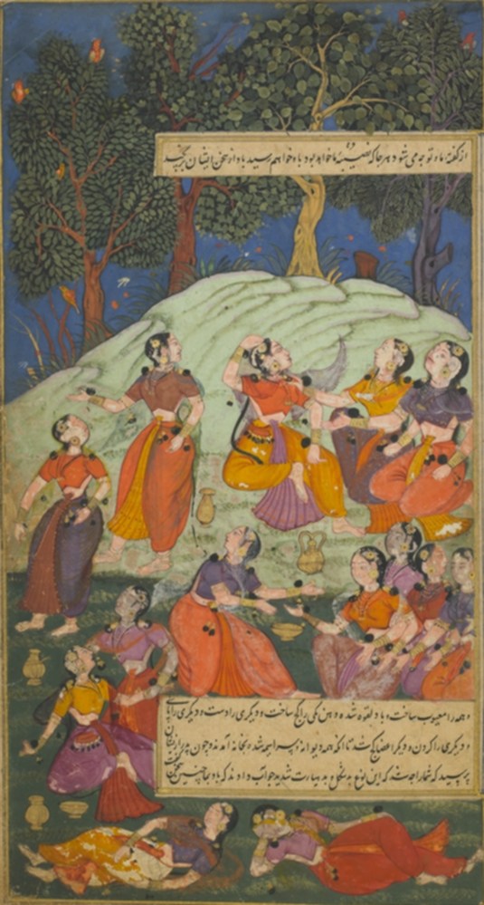 kuSanabha was a saintly ruler (rAjarshi – a king who is also a Rshi) and married ghrtAchi. They were blessed with a hundred beautiful daughters. The hundred delightful and youthful damsels, fully bedecked with jewels came to the gardens appearing veritably like lightning and started dancing, frolicking and singing to the tune of nice instruments. Those damsels with unparalleled beauty thus gracefully enjoyed in the gardens and appeared like twinkling stars in the middle of clouds.