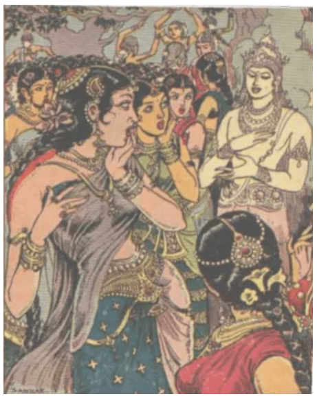 During the same time, O Rama, there lived a celibate and austere brAhmin by name chUli who was performing penance for lord brahma. During the time he was performing the penance there was a gandharvi (nymph) named sOmada who was the daughter of UrmiLa and serving the Rshi chUli. She lived a religious life and with great devotion served the master. Over a period of time, the Rshi, her spiritual guide was pleased. He blessed her so and asked what favor she would wish to have from him.