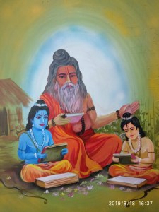 Having composed future events also in the uttara kAnDam, the sage started to wonder about who could perform this epic poem. As mentioned earlier the lines have equal numbers of syllables and can be tuned to a stringed instrument. While he was wondering thus, kuSa and lava, his disciples came forth and presented themselves in the garb of ascetics at his feet. The well known princely brothers having the knowledge of dharma, endowed with a wonderful voice, intellect and the knowledge of the vEdas were taught the epic poem of SrIrAmayaNam by the master composer vAlmIki for its recital which is verily for the nourishment of vEdas.