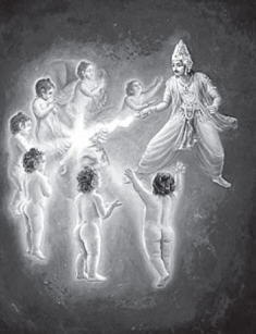 The seven fold division of her fetus distressed diti. However she absolved the mighty indra of any fault and recognized that it was her own mistake that led to the seven-fold division of her fetus.