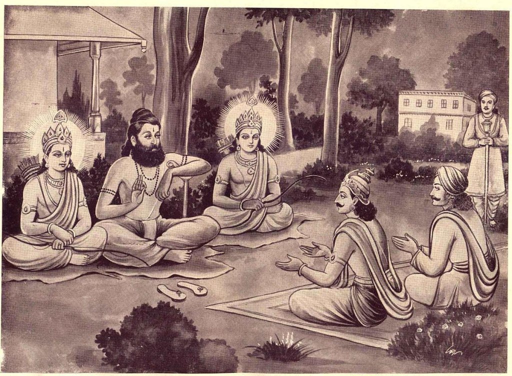 King janaka of mithila, having come to know of the advent of sage viSwAmitra immediately proceeded humbly, preceded by his minister satananda, the son of ahalya and gautama to welcome him. Other priests immediately followed with all the paraphernalia involved in the worship and welcome of such eminent guests. viSwAmitra duly received king janaka with his retinue and conducted enquiries about the proper conduct of the yajna as also the welfare of sages, preceptors and priests. With folded hands the king janaka requested the sage viSwAmitra to occupy the high seat. As the venerable sage did so, the rest of the members of the royal entourage occupied seats appropriate to their ranks. King janaka then with all humility addressed the sage and said “today the gods have rendered my yajna successful and I have attained the merit of conducting the yajna by having your presence. I am highly gratified and obliged that you have graced this yajna along with other Rshis. I have learned that only twelve days remain for this yajna to be accomplished after which the gods shall be claiming their share of the yajna offerings. The king janaka then turned his gaze towards the accompanying princes rAma and lakshmaNa and humbly rolled off a barrage of questions with a curious smile –
