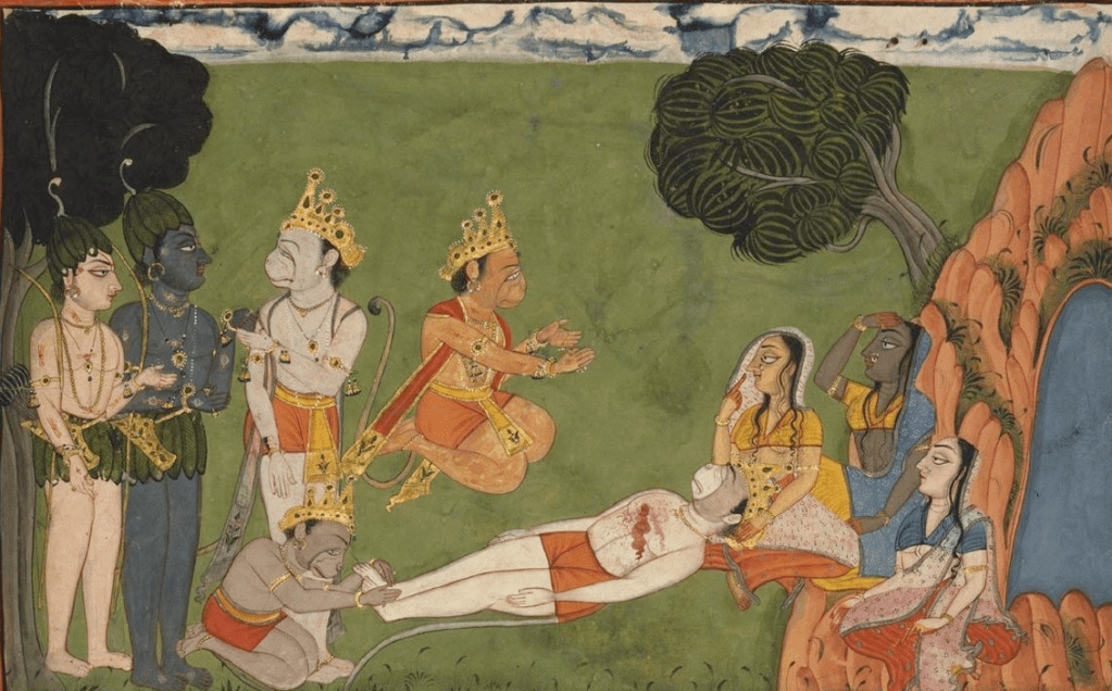“O vAnara warrior, o great king, O my lord, O my beloved, O mighty one, O dear one deserving the best, you are not seeing how these people are grieving. Your countenance looks as wonderful with the colours of setting sun as it was when you were alive. In the form of rAma, O vAnara, the lord of death dragged you into himself and with one arrow rendered all of us into widows. O lord, look at these charming women who were your favorites have come all the way and fallen at your feet, why don’t wake up and cast your graceful glance at them and sugrIva and the ministers including tAra who are here. O lord, send away all these ministers from your presence so we can go around the forest and sport passionately”.
