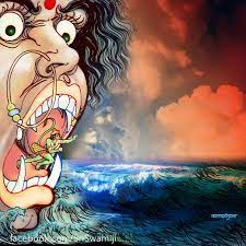 Spoken to thus and honoured by the gods, surasA assumed the form of a demoness in the middle of the sea. She assumed a terrifying and ugly form and engulfed the flying hanumAn and said –