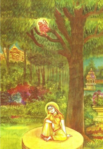 The valiant hanumAn witnessed first hand the vision of trijaTA, sItA’s grief and the torture by the ogresses. A variety of thoughts criss crossed his mind as he beheld sItA who resembled a goddess in the divine garden of kubEra (nandana vana) –