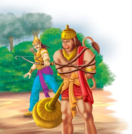 He thought – “ even though I am bound by this astra, I have no fear since I am protected by the lord brahma, indra and anila, the wind god. I should remain bound and be caught by the demons so that I can see around the city of lanka and also have an audience with the king of the demons”.