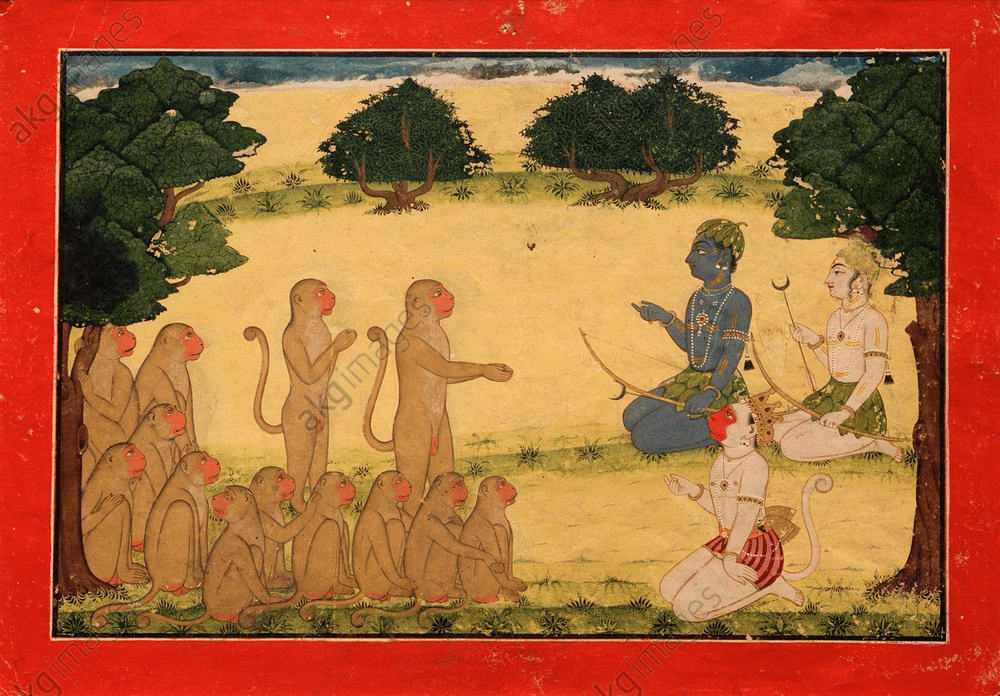 The ransacking of the madhuvana grove by the victorious vAnaras left dadhimukha, the caretaker fuming. He along with his guards tried to browbeat and also beat the offenders. However enjoying protection from the highest point in the hierarchy, the prince angada himself, the vAnaras offended them even by vulgar means. When chased, they sought refuge from the mighty angada who thrashed dadhimukha and his guards. The caretaker soon realized this was beyond him and sought to escalate the matter to sugrIva with a complaint against the offenders. He leapt across to where sugrIva, rAma and lakshmaNa were camping and sought the refuge of the king sugrIva. Onwards…