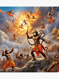 The demons attacked the vAnaras who were on the ground with their spears and darts from the ramparts. The vAnaras enraged by this, leapt up to the ramparts and threw the demons to the ground. Soon the earth became a slime of blood and flesh as a bloody war broke out between the demons and the vAnaras. The combat was tumultuous.