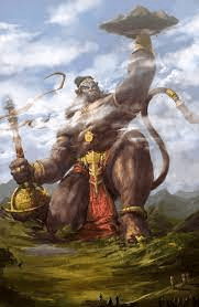 Beholding the mighty vAnara, hanumAn come to their rescue, the other vAnara warriors were much enthused and reinvigorated. They felt mighty in the shelter of the mighty hanumAn! The demon warrior akampana noticed hanumAn who was of mountainous proportions and rained arrows on him like lord indra showers rain. Ignoring the impact of the arrows on him, hanumAn made up his mind to vanquish akampana. The son of the wind god ran towards the demon with a mountain peak in one of his hands and swirling it hard threw it on to him just like indra swirled the thunder on namuchi in the yore. The warrior akampana beheld the oncoming mountain peak and sighting it from a distance unleashed an arrow with crescent moon and destroyed it midair.