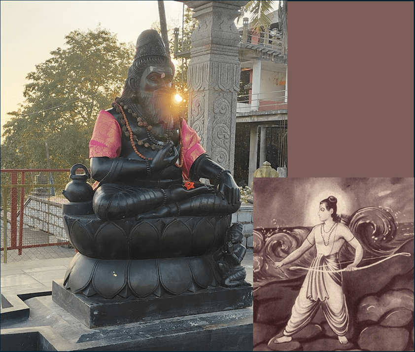 Then, noticing rAma who was very tired in the battle and was in deep contemplation as rAvaNa returned to the battle, from among the gods and the greats who had converged to witness the war, lord sage agastya approached rAma and said –