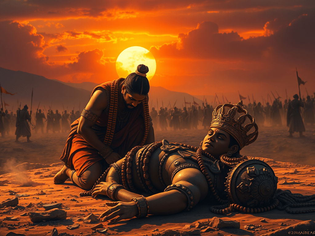 Beholding his brother fallen on the battleground, struck by rAma, grief surged in vibhIshaNa and he wailed –